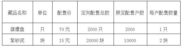 2、 根據(jù)投資人開戶的時間先后順序進(jìn)行配售。1-2000名配售《雄鷹盤》,2001-12000名配售《紫砂泥》。