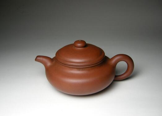 一說清代邵大亨初創(chuàng),原意是壺體仿照鼓型,后人仿制做這種壺形就成了仿古代壺型的意思了。另說最早見于近代趙松亭按吳大徴授意所作,身扁、腹鼓、頸高、蓋板平滑,壺蓋與口沿子母線吻合嚴(yán)密,合成圓線飽滿,扁鈕有力,虹鈕有勢,二彎流胥出自然 ;圓圈把勻勢而起,有些款把圓下有垂,富于靈動,整體骨肉亭勻,收展有度,有一氣呵成之暢。
