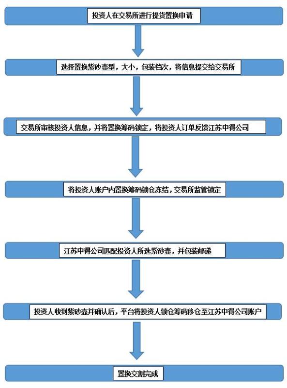 為了保護線上投資人的利益,促進線上線下的流通,江蘇中得文化發(fā)展有限公司聯(lián)合景德鎮(zhèn)陶瓷交易所(以下簡稱陶交所)將推出“線上泥料藏品置換”活動。持有(編號501001)黃龍山紫泥鯊皮青、(編號501002)中鼎底槽清紫砂泥藏品的投資人申請?zhí)嶝洉r可以選擇直接提取紫砂泥料,也可以與線上泥料制作的紫砂器物進行籌碼置換。