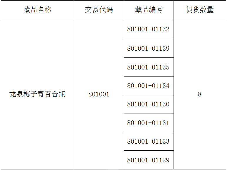 應(yīng)投資人會員申請,經(jīng)本交易所對申請人信息核實(shí)以及出庫藏品復(fù)驗(yàn)后,提貨藏品已完成發(fā)貨,提醒廣大投資者注意盤面藏品數(shù)量變化。提貨藏品信息如下: