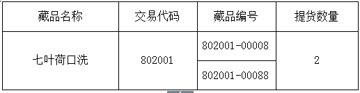應(yīng)投資人會員申請,經(jīng)本交易所對申請人信息核實以及出庫藏品復(fù)驗后,提貨藏品已完成發(fā)貨,提醒廣大投資者注意盤面藏品數(shù)量變化。提貨藏品信息如下: